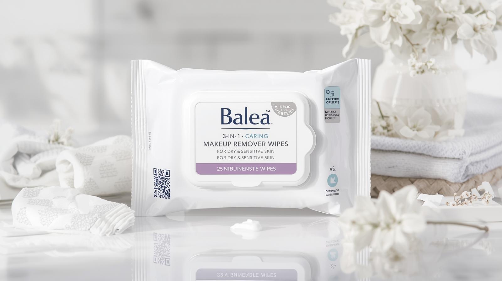 Balea 3-in-1 Caring Makeup Remover Wipes for Dry & Sensitive Skin, 25 Wipes